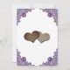 Purple and sunflower wedding save the date card featuring sunflowers, string lights, burlap hearts and delicate floral lace.
