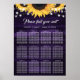 Complement your purple rustic wedding party inspired by sunflowers with this elegant seating chart for 12 tables. Matching items available.