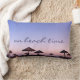 “On beach time.” A purple blue and pink sunset on a Southern California beach with thatched palapas oozes relaxation and reflection. Relax, smell the ocean air, and recall memories of summer whenever you use this chic, stylish, photography lumbar pillow. Makes a great housewarming gift!