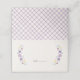Created to coordinate with the "Sweet Floral" birth announcement collection, this pretty, folded place card features space for a guest's name and table number, framed by a wreath of delicate flowers and leaves. The inside of the card has space for a custom message, and the back of the card features a purple, hand-drawn gingham pattern. This place card is perfect for baby showers, as well as bridal showers and weddings.