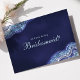Purple Teal Agate Geode Will You Be My Bridesmaid Invitation. This elegant modern trendy abstract design features sparkly purple and teal glitter agate gemstone lines against a purplish navy blue watercolor background.