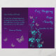 This 8.5"x11" purple and aqua blue floral wedding program has silver butterflies, flowers, and vines on it that match the wedding invitation shown below. It is designed to be folded down the center. ****PLEASE NOTE that the higher grade paper is a card stock and does not fold well. All the text is customizable. Email niteowlstudio@gmail.com if you need any assistance with the customization of this, or if you have any questions, or requests for matching items.