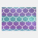 Purple Teal Glitter Mermaid Scallop Scales Wrapping Paper Sheets