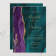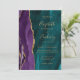 Purple Teal Gold Agate QR Code Wedding Invitation