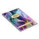 Personalize your name (or monogram) in black script with extra text on brushed gold metal oval and stripe on smokey purple, teal and gold ink abstract.