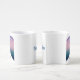 This pair of nesting mugs features a modern purple and teal gradient heart design with the romantic text "Yours Always." Crafted with unique heart-shaped handles, these interlocking ceramic mugs are designed for couples. Personalize the back with custom names for a unique wedding or anniversary gift. The sleek aesthetic fits contemporary home decor, making it a functional yet sentimental keepsake for Valentine's Day or engagement celebrations.