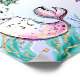 Sweet mermaid or under the sea themed birthday party welcome sign featuring a cute purple and teal mermaid and various sea creatures such as a narwhal and sea turtle. The design also features some coral, sea shell and star fish as well as a faux gold glitter heading that is removable.