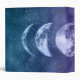 A cool and stylish celestial personalized school or office binder with a teal blue and purple lunar moon phases on a starry night sky design.