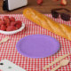 Purple textured surface with swirling pattern paper plates