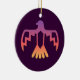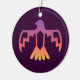 Stylized thunderbird in faded red, orange and purple with a dark purple background.