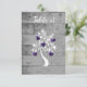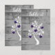 Number your reception tables with a Purple Tree of Hearts Wedding Reception table card. Table card design features a gray wooden background adorned with a tree with blooming hearts on its branches. Additional wedding stationery available with this design as well.