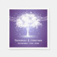 Purple Tree String Lights Wedding Napkins that are personalized with the bride and groom's names and the wedding date. The design features a lighted tree with fairy lights. These are perfect for an evening wedding or garden wedding.