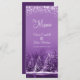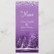 Beautiful purple winter pine trees and lake reflection wedding dinner menu or special event menu. Edit this 4 course menu with your own words. Ideal for purple or lakeside winter weddings or events. © Design and original watercolor and gouache painting by Sarah Trett. www.sarahtrett.com for www.mylittleedenweddings.com on zazzle.