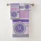 Purple Trendy Stripes Monogram Wreath Laurel Leaf Bath Towel Set