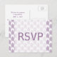 Trendy and stylish Tribal Arrows Wedding RSVP Postcard with a purple and white arrow pattern background. Easy to customize with your wedding details. For more customization options, click on the Customize It button.