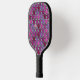 This pickleball paddle has an art deco design of tulips from pentagons and trapezoids in different shades of purple.