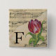 Botanical style purple and yellow tulip is partnered with vintage sheet music in a classic Victorian style. This decoupage inspired design is personalized with the monogram "F" over an aged parchment background.