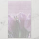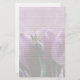 This design features a bunch of purple tulips with an aqua dragonfly in the leaves on a multi-textured transparent graphic background. Use the customize it button to subtly change the background color behind the flowers. The lines are optional - simply clear them for unlined paper.