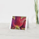 This is an award-winning original photograph of vibrant purple tulips with water droplets. The warm glow gives it a bonus attractiveness. This is a special note card.
