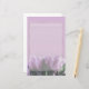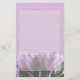 This design features a bunch of purple tulips on a multi-textured transparent graphic background. Use the customize it button to subtly change the background color behind the flowers. The lines are optional - simply clear them for unlined paper.