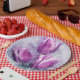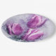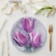 Beautiful purple tulips paper party plates with a watercolor illustration.