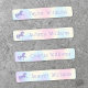 Name labels featuring a purple unicorn and your name on a pastel rainbow background.