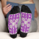 Original digital artwork on these fun socks featuring a vintage, retro and old-world style tile pattern in purple and gray. These playful crazy socks are considered a sustainable product and are printed with water-based inks. Cozy and comfy and make a great gift. One size truly fits all.