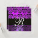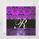 PURPLE VIOLET BLACK DAMASK MONOGRAM,,white Invitation