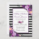 Plain white envelopes are included with paper invitations and will come to fit the invitation size you select. If you don’t need the envelopes, you may choose to not receive them by selecting the dropdown below "Envelopes" and choosing "None." If you’d like to have a design on your envelopes, you can browse all of these available envelopes to find the design that complements your Purple Violet Floral Black Stripes Wedding Invitation.