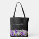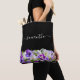 An elegant black background and a border of violet, lavender colored, purple and white watercolored pansies. Personalize and add your name. The name is written with a modern hand lettered style script. White colored letters. To keep the swashes only delete the sample name, leave the spaces or emoji's in front and after the name