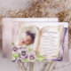 You can edit the design on the back through our Design Tool and selecting "Layers." By customizing the back of your Purple Violets Arched Photo Unique Baptism Invitation, you can have a more complete invitation and present more information to your potential guests, but don’t worry - you don’t have to add a design to the back if you prefer to just have a design in the front.