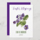 Purple violets from original watercolor floral botanical. Easter Blessings saying. Name place and date. Back of card purple. Traditional style with vibrant colors.