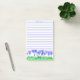A purple lined post-it note pad decorated with a garden of purple wood violets illustrated with watercolor. You can customize the text to fit your needs.