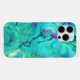Aqua green and turquoise blue abstract art is colored like the Caribbean Sea with bright splotches of violet and purple. A bit of purple and indigo looks like a slender sprite dancing in the middle of the water scene. This art makes you think of tropical scenes and beach life.