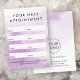Appointment cards with template fields for your contact information and logo on the back. Soft purple watercolor background. Font and font colors can be changed with the design tool.