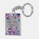 Purple Watercolor Floral & Silver Glitter Wedding Keychain