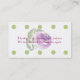 This standard business card front features a purple watercolor rose and a diminished opacity on the back. It is designed as a small business loyalty punch card. The punch circles on the back match colors in the rose along with a message of gratitude. Fill in the template fields with your information for the front and back, REMOVE any text or click customize to select a typeface style, size, and color you prefer.