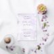 Elegant wedding invitation, featuring a purple watercolor wash and silver foil spatter.