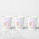 Cute Paper Cups for girl baby shower. The soft pastel purple, ivory and beige colors with a cute sleeping baby bear girl on the clouds with the balloons. Easily personalize the text. Great for a lovely girl baby shower party all year round. :) - Kate Eden Art