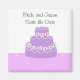 A pretty purple cake with delicate white icing and flowers in white with pink centers and soft green leaves. A lighter purple border. Customize with information as desired.
