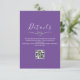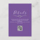 Minimalist, elegant, modern, purple wedding details card with QR code for more information, silver rope heart and simple calligraphy script.