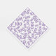 This numerical design is a purple and white random number pattern with a purple milestone number 100 repeated in varied sizes and angles over a white background and framed with a narrow purple square around the edges.
