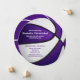 This sporty basketball birthday party invitation features a stylized basketball graphic with recolored alternating purple and white panels, upon which you can customize the party details - reverse side reveals a simple minimalist basketball represented only by its white seams on a purple background - by katz_d_zynes