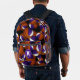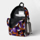This cool basketball backpack features a random pattern of varied size basketballs turned every which way on a black background - each of the basketballs in the pattern has two recolored panels--one purple and one white - customize with the athlete's monogram - by katz_d_zynes