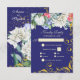 © Socialite Designs & LICENSORS. Elegant gold flourish, with purple / royal blue background, wedding RSVP with watercolor florals, in white, purple/blue, pink and green, ready to be personalized for your special event. Font style, text and paper type can be changed. Need HELP with customizing or additional products with this design? Please do not hesitate to contact Socialite Designs.