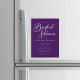 This royal purple bridal shower magnetic invitation features beautiful white typography on a solid deep violet for an evening party in the winter. Minimalist script and a bold color makes your bridal event invite magnets pop and stand out from the crowd.