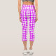 Purple White Checker Diamond Pattern Capri Leggings
