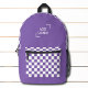 Purple White Checkerboard Check Pattern Logo Printed Backpack