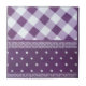 Purple White Checkered Polka Dot Floral Damask Art Ceramic Tile