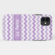 Stylish and girly chevron iPhone 5 case designed with a pattern of 2 shades of purple and white zigzags, and personalized with your name or custom text in white over purple.
